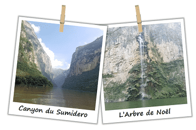 De nombreuses traversées en bateau à moteur sont organisées, depuis les divers embarcadères de Chiapa de Corzo, où vous pourrez admirer des formations rocheuses telles que la cueva de Colores (grotte des couleurs), la cueva del Silencio (le grotte du silence) et les chutes d’eau de la Cascada Grande (grande cascade), el Cordón de plata (le cordon d’argent) et le célèbre Árbol de Navidad (l’arbre de Noël). Ce parcours, qui prend fin à Chicoasén, dure environ 2 heures et demi.